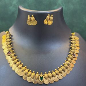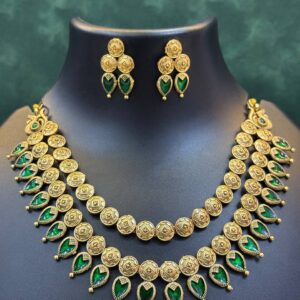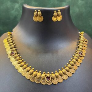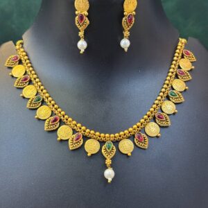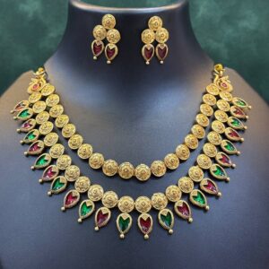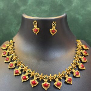Gold Plated Ruby & White Stone Studded Necklace | GP 1002