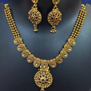 Gold Plated Ruby & White Stone Studded Necklace | GP 1002