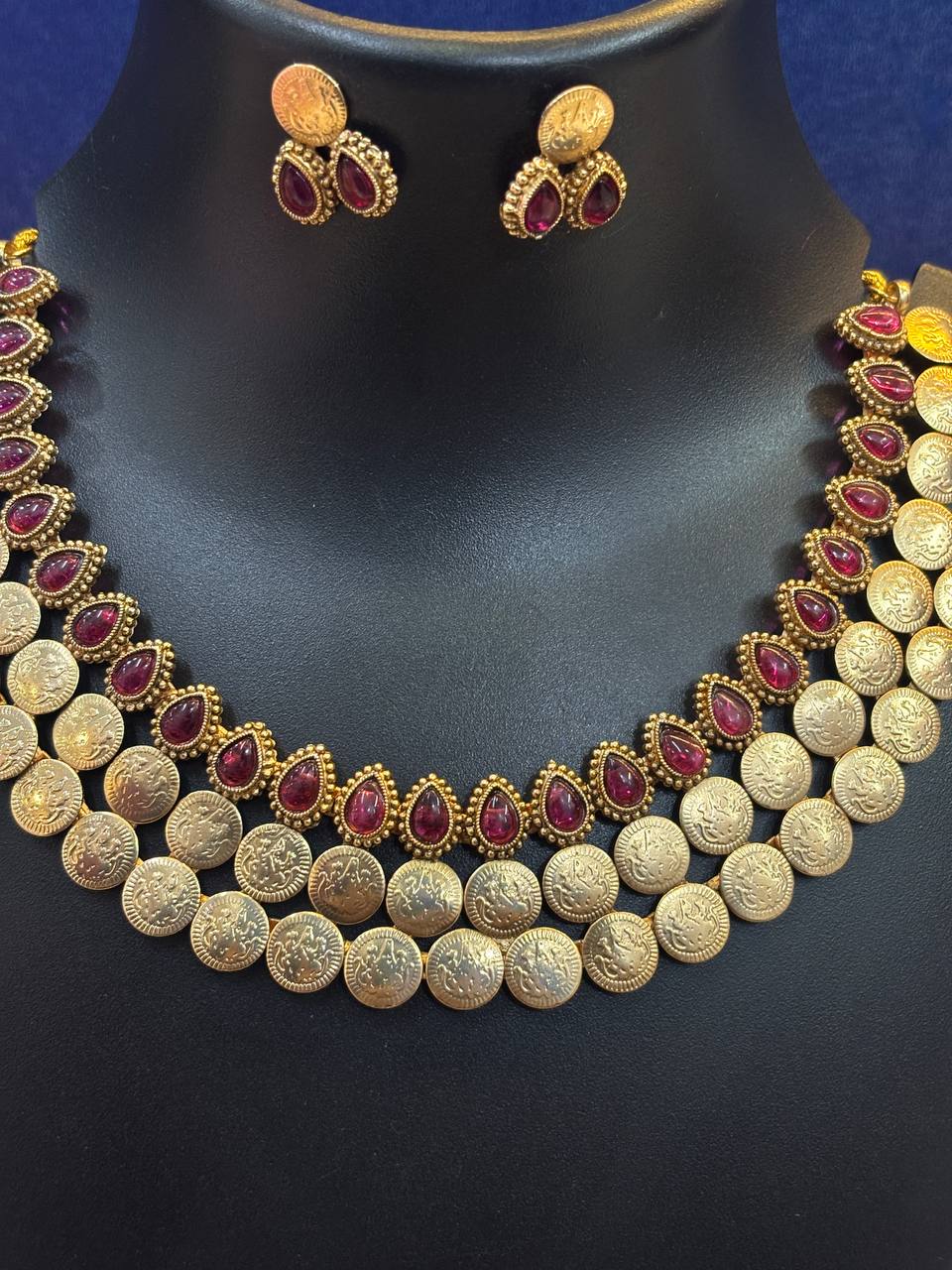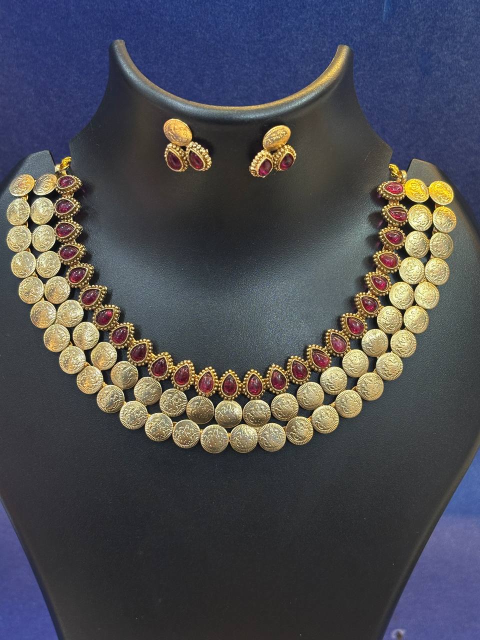 Enhance your ethnic look with this beautiful antique necklace set with matching earrings, designed to give you a rich and elegant appearance for every special occasion.