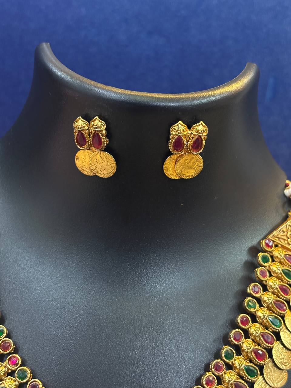 Enhance your ethnic look with this beautiful antique necklace set with matching earrings, designed to give you a rich and elegant appearance for every special occasion.